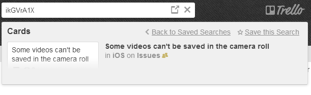 This allows us to use Telegram hashtag search to track issues for follow-up questions. The bot can use these hashtags to send automatic replies when a bug is fixed. We can also search for this issue on Trello by its ID.